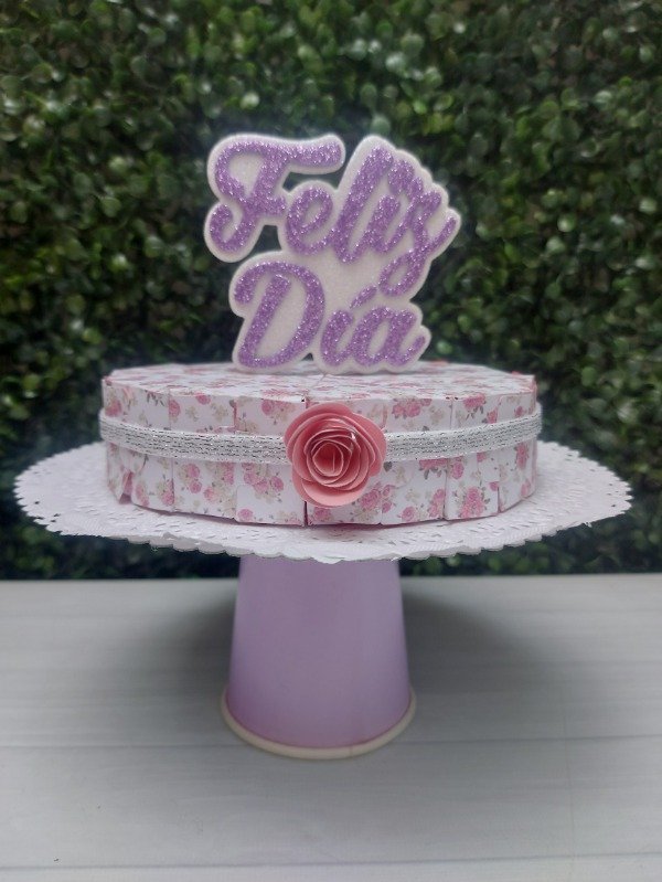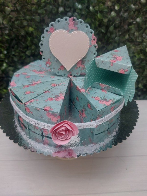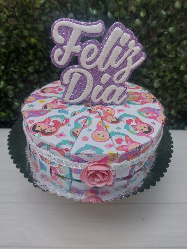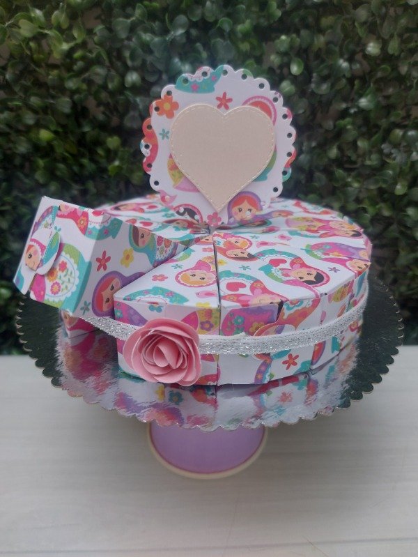 Set de 12 cajitas de cartulina estampada formando mini torta, presentada con elástico de lúrex, topper de goma eva o cartulina y base de cartón. Ideal para rellenar con caramelos, bombones, confites o... regalos en efectivo?