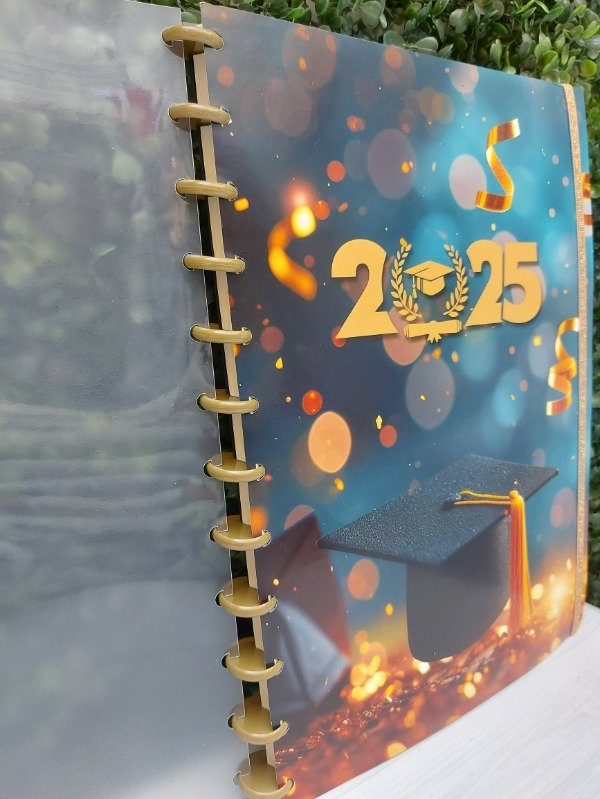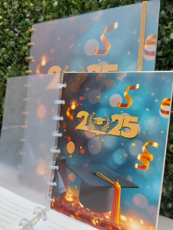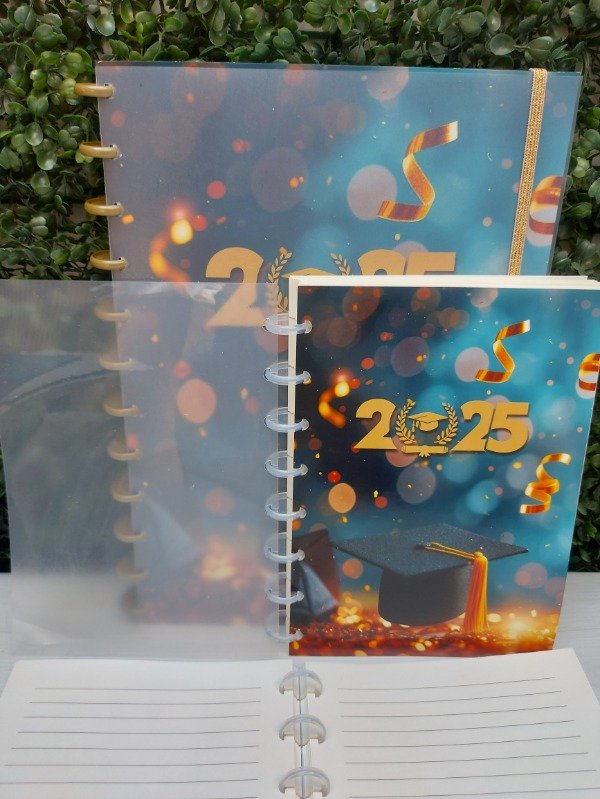 Cuaderno inteligente para obsequiar como recuerdo a grupos de egresados. Cada cuaderno cuenta con 100 hojas ecológicas rayadas, carátula alegórica, tapas de celuloide y cierre de elástico. Puede optarse por tamaño A5 (15x21cm) o tamaño A4 (20x30cm). Opcional con cargo extra: colocar nombre de cada alumno o generar diseño de carátula especial. Consultar costo según cantidad, tamaño y diseño.